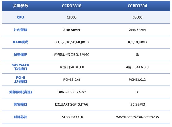 国芯科技基于自研的处理器内核推出了系列RAID(冗余磁盘阵列)控制芯片。CCRD3316芯片面向服务器磁盘阵列管理领域,CCRD3304芯片面向工控与边缘计算领域。