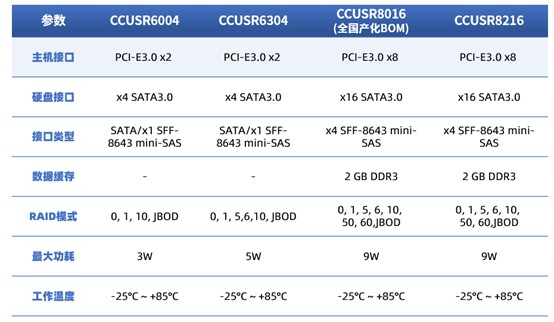工控与边缘计算领域,这类设备通常部署于环境复杂、空间受限的边缘侧,对硬件的环境适应性、功耗控制和长期稳定性提出极高要求。CCUSR6004和CCUSR6304系列支持宽温工作(-25℃至85℃),功耗仅为3-5W,具备RAID0/1/5/10/JBOD等多级数据保护机制,可有效应对振动、温度波动等工业现场常见挑战。